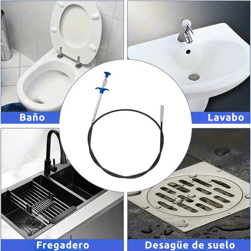 Con nuestro Desatascador Profesional Flexible, eliminas los atascos en segundos, ya sea en el baño, la cocina o el lavabo, sin llamar al fontanero ni usar productos químicos.