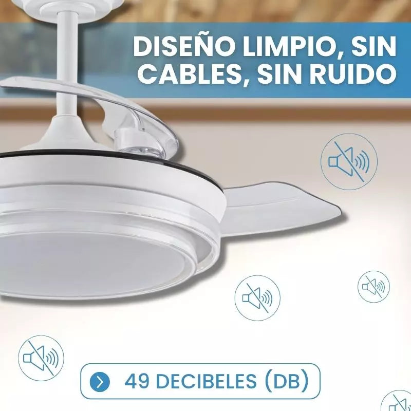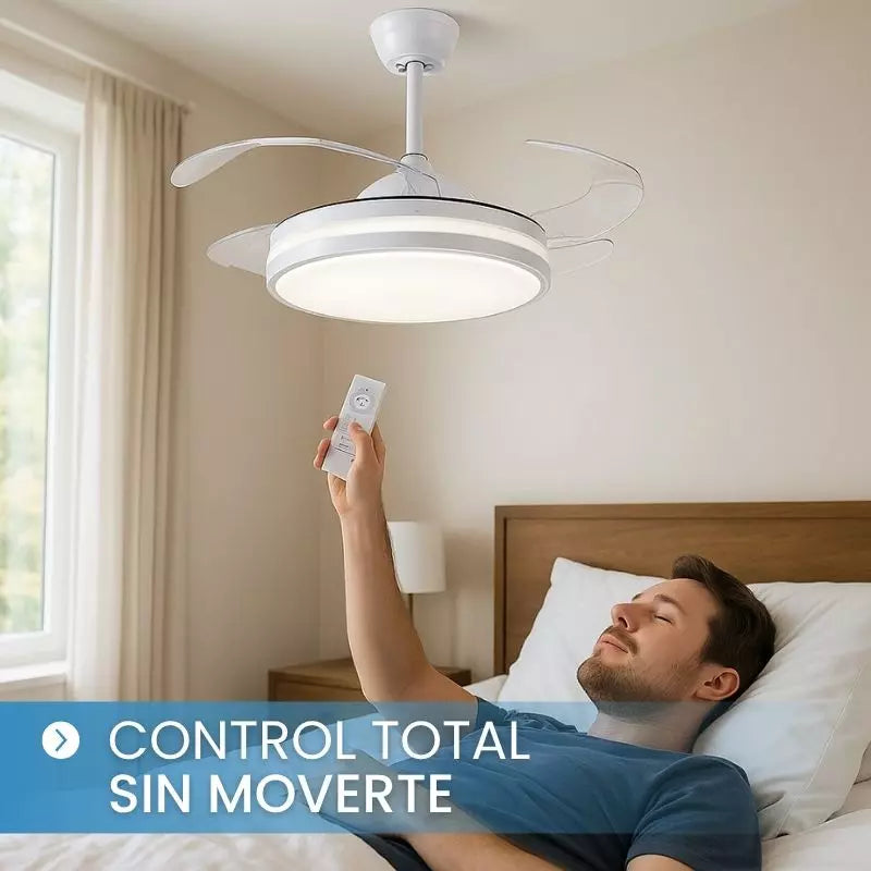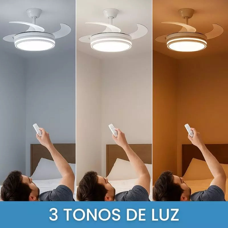 ¡Sí! VENTILED combina una luz LED potente y regulable con un ventilador de 6 velocidades y aspas retráctiles. Es una solución 2 en 1 que ahorra espacio y moderniza cualquier estancia.
